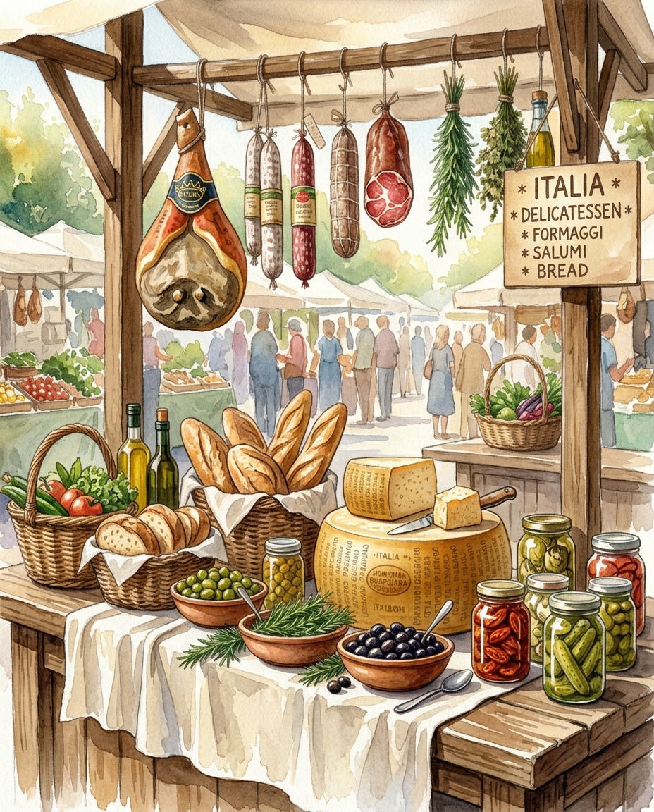 Reife Käse aus den Bergen, traditionelle Salumi, sonnengereifte Oliven und feine Antipasti: jedes Produkt erzählt seine Geschichte – ehrlich, regional, und mit dem unverkennbaren Geschmack la dolce vita.