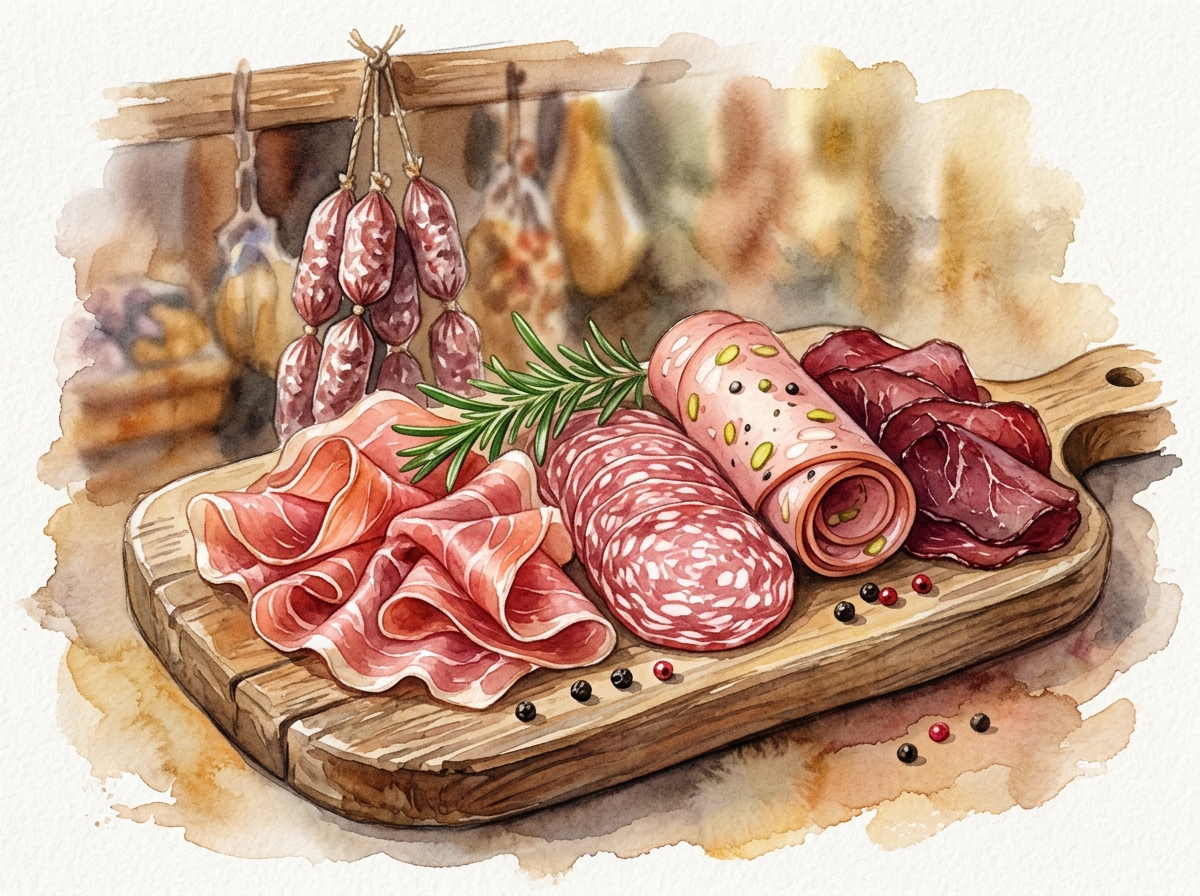 Prosciutto di Parma, Salame, Bresaola, Mortadella – luftgetrocknet und voller Geschmack.